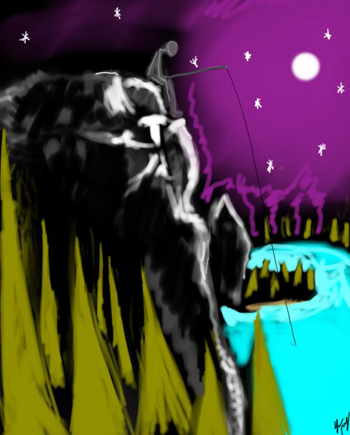 A zombie treading water,